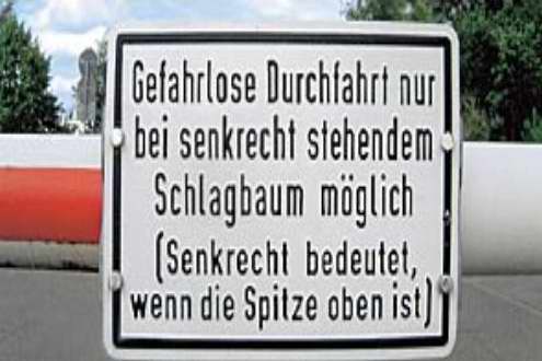 Und wie immer lässt man uns mit auf der Seele brennenden Fragen zurück. Zum Beispiel, wo sich diese Schrankenwarnung befindet. Das wäre doch mal interessant. Hängt das unter Umständen mit unserem Freund, dem Archetyp zusammen? Aber das hat uns der Einsender natürlich wieder mal nicht mitgeteilt. Wäre ja viel zu einfach. Sollen die armen Jungs von skandaloid doch selbst dahinter kommen…