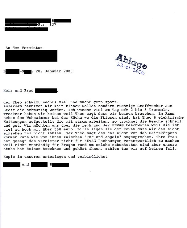 Eigentlich wollen wir uns über dieses Schreiben auch gar nicht lustig machen. Wir können zwar, aufgrund unserer wahnsinnig guten Erziehung, die angewandte Sprache im Grunde nicht gutheißen – Aber tief in uns sehen wir diesen Mann als Held. Wie oft schon stand uns die Contenance im Weg, wie oft schon war uns danach, einfach mal ähnlich auszuflippen und rumzuschimpfen. Wie gerne hätten wir schon desöfteren eine abgesägte Shotgun unser Eigen genannt, um unerträgliche Hotline-Honks und unverschämte Verkäufer-Debilofanten einen Kopf kürzer zu machen. Aber nein.