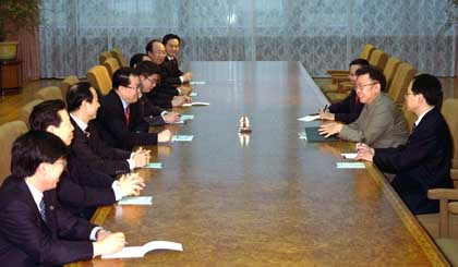Unser fotographisches Dokument zeigt die erste Redaktions-Sitzung eines jeden Tages. Sie findet um 5:30 Uhr morgens statt. Auf der rechten Seite erkennt man problemlos das immer inspirierte Antlitz unseres heißgeliebten und unsterblichen Chefministers, der sich nicht wohlfeil genug war, diese Zeilen hier selbst zu tippen. Umrandet auf seinen Seiten wird der weltbekannte Mann des Geistes von seinen persönliches Assistenten.