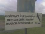 Doch selbst hier gibt es noch einigen Optimierungs-Spielraum. Da es bei diesem Schild ganz offensichtlich nicht wirklich um die Weitergabe von wertvollen Informationen zu gehen scheint (Wann, bitte, sind denn die Öffnungszeiten, nach denen geschlossen ist?), sind wir dafür, das Ganze noch ein wenig einzudampfen und zu entschlacken.