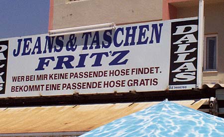 3.000 Hosen und acht Jahre später schleppt man sich dann ergreist aus dem Geschäft. Doch was für ein Trost: Da es keine passende Hose gab, bekam man wenigstens eine passende Hose geschenkt. Und weil dieses Geschäftsmotto so komplett sinnlos ist und nebenbei die Aura des Supermarkt-Parkplatz-Gebrauchtwagenhandels versprüht, gibt es dafür nun den Schlimmerheitsorden des Tages.